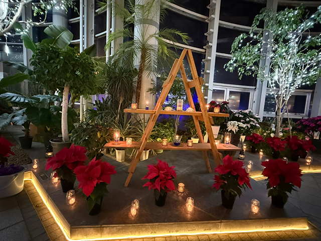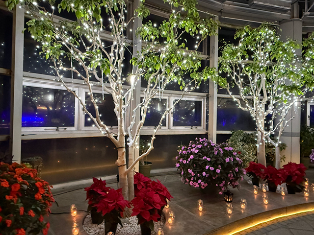 ブルーの並木道とキャンドルの灯りがクリスマスムードを盛り上げてくれます。